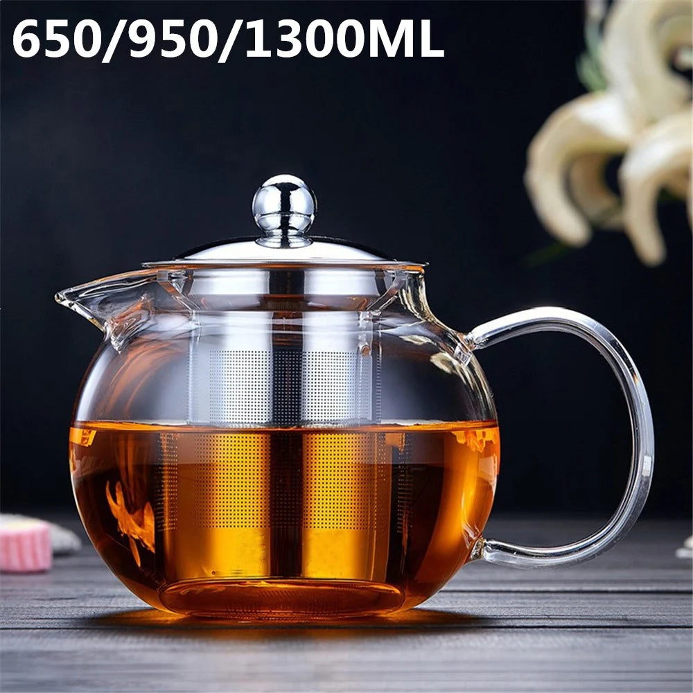 Heat Resistant Glass Teapot with Stainless Steel Infuser – 650ml, 950ml or 1300ml