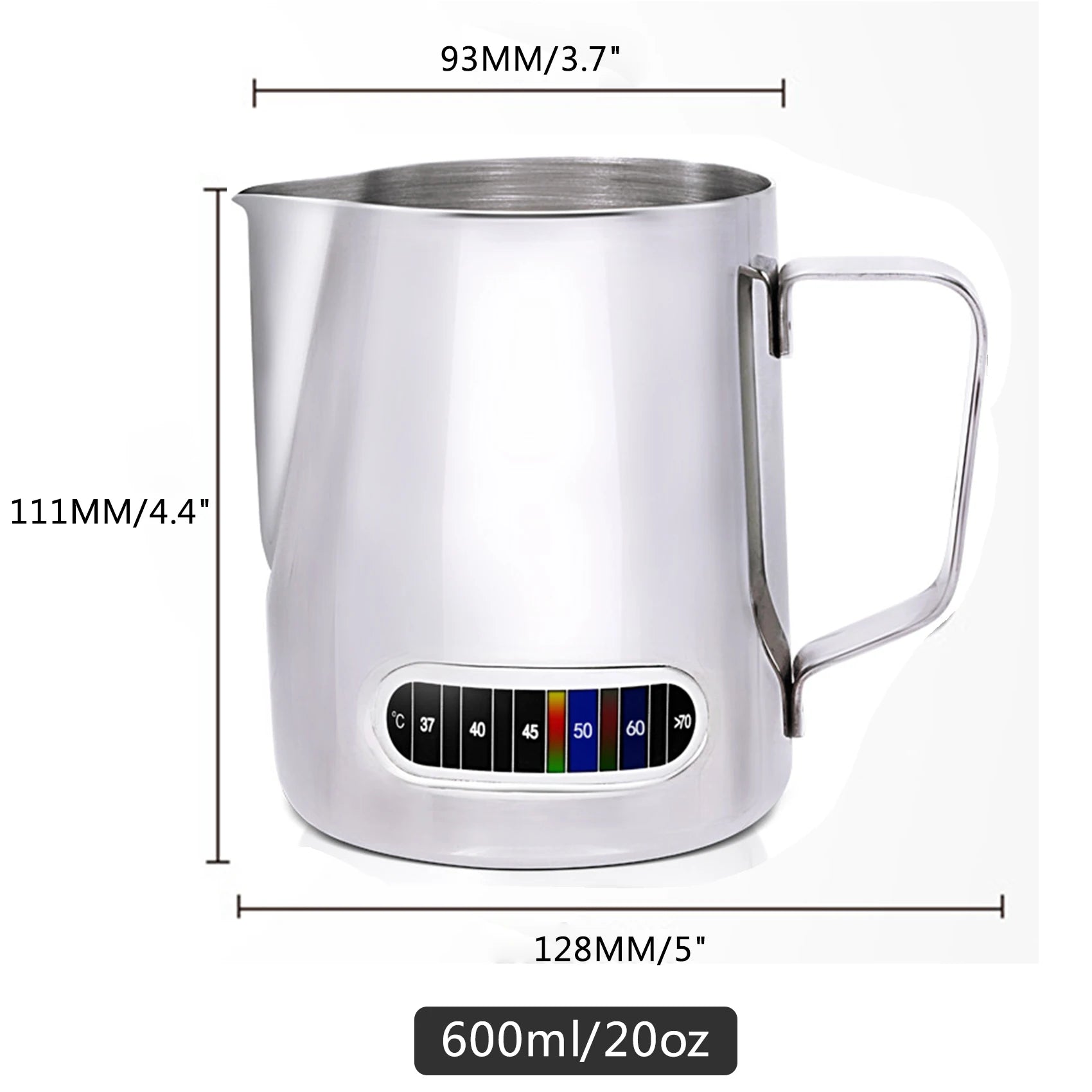 Milk Frothing Pitcher with Temperature Display – Stainless Steel Jug for Latte Art 350/600ml