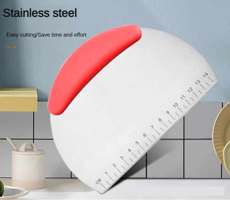 Make your kitchen prep more efficient with the Stainless Steel Flour and Dough Cutter. Designed with a built-in scale for accurate measuring, this versatile tool is perfect for cutting dough, rice noodles, pastry, and even scraping work surfaces clean. Crafted from durable stainless steel, it’s strong, easy to handle, and built to last, making it an essential companion for every baking enthusiast or professional chef.